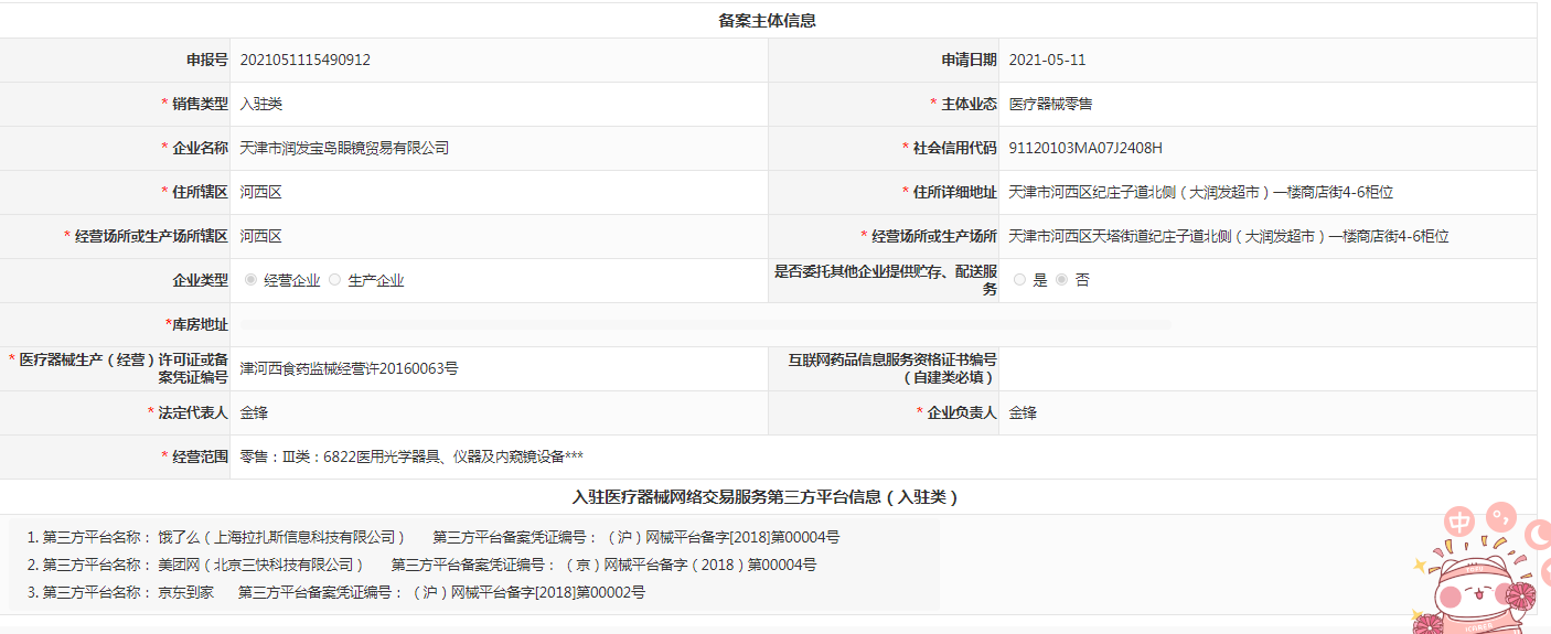 天津市润发宝岛眼镜贸易有限公司 津河西食药监械经营许20160063号