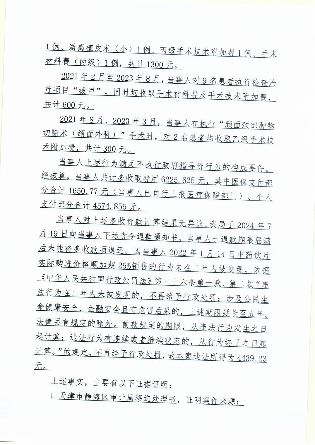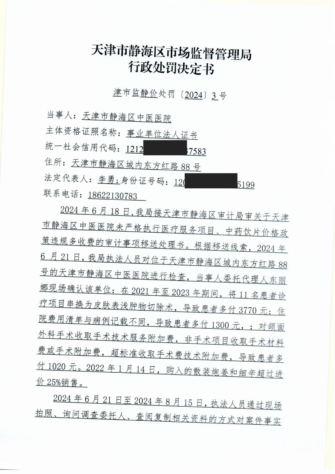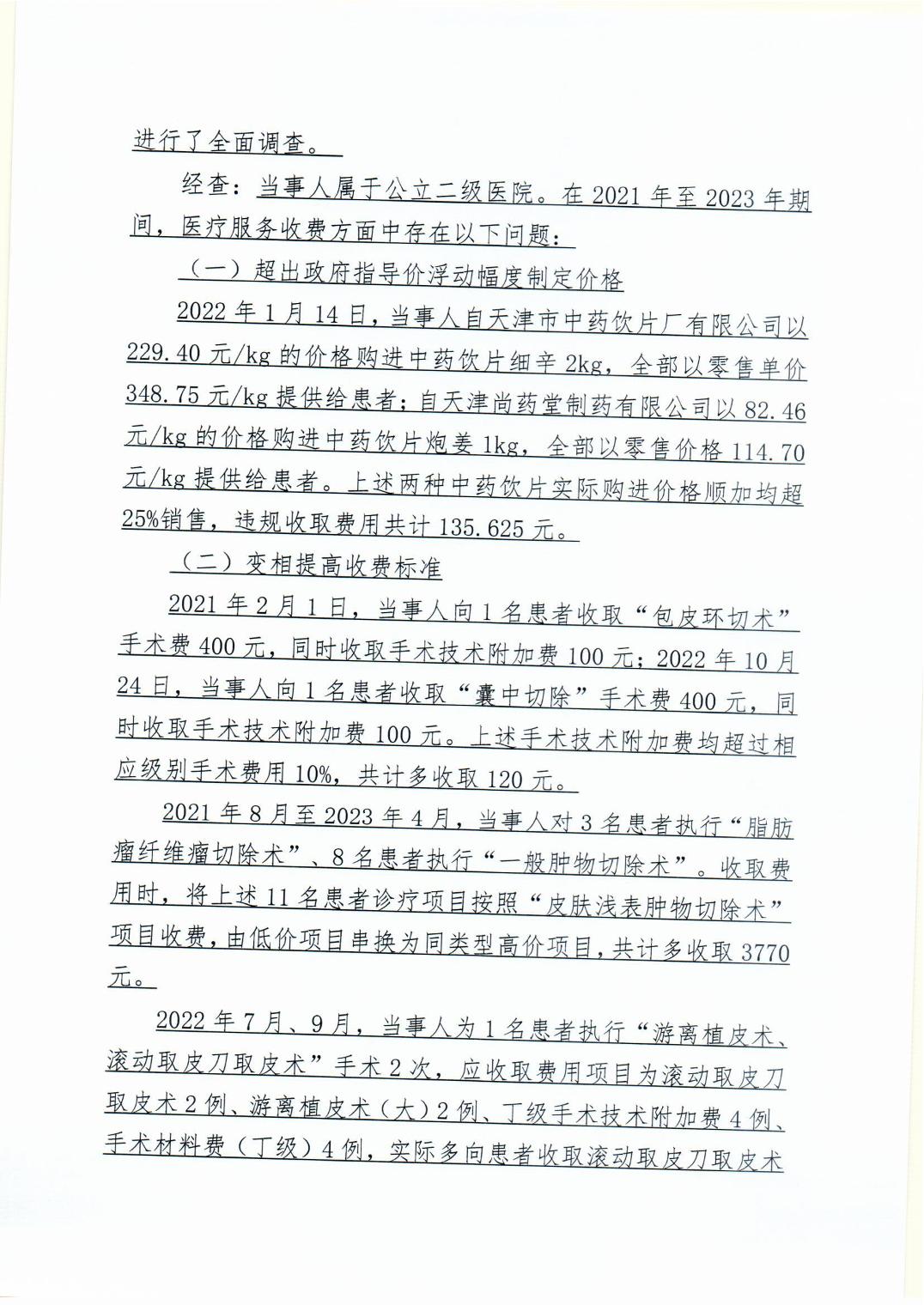 天津市静海区中医医院对外提供医疗服务不执行政府指导价案