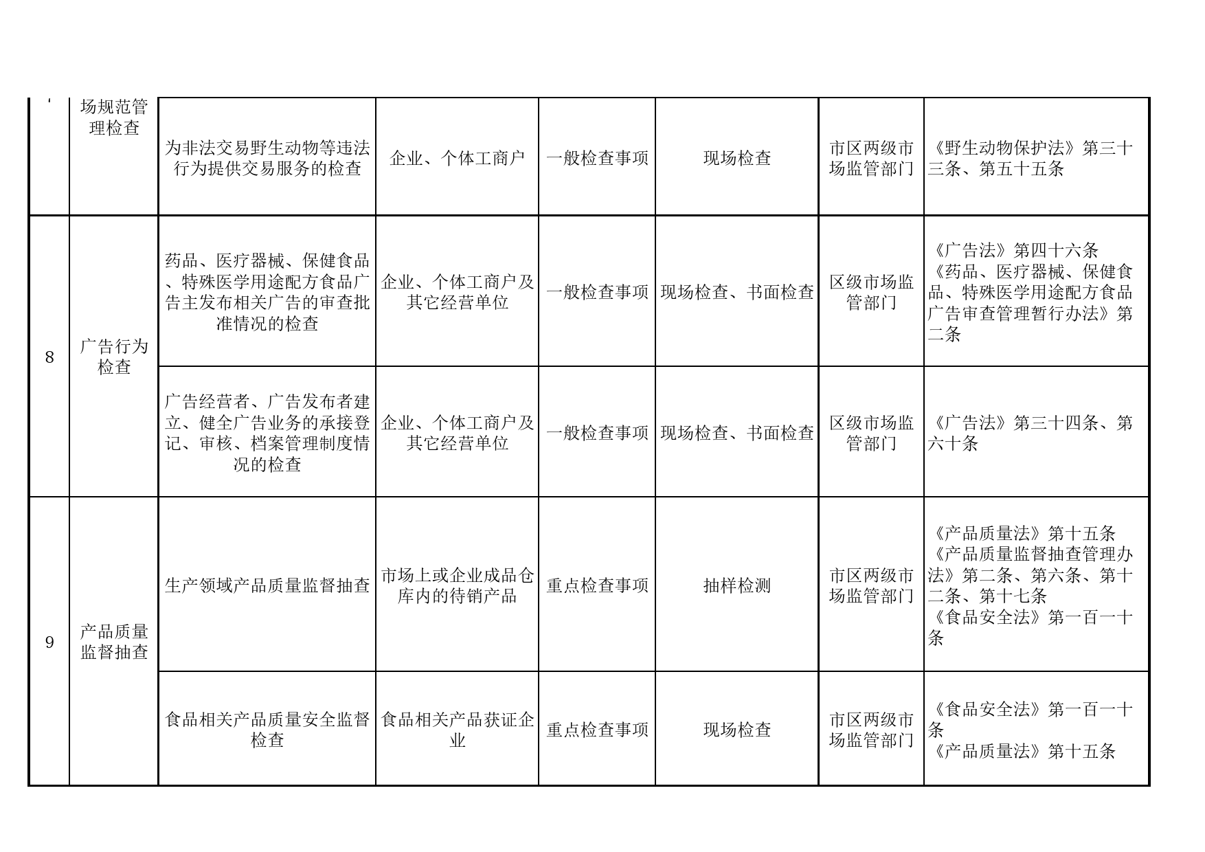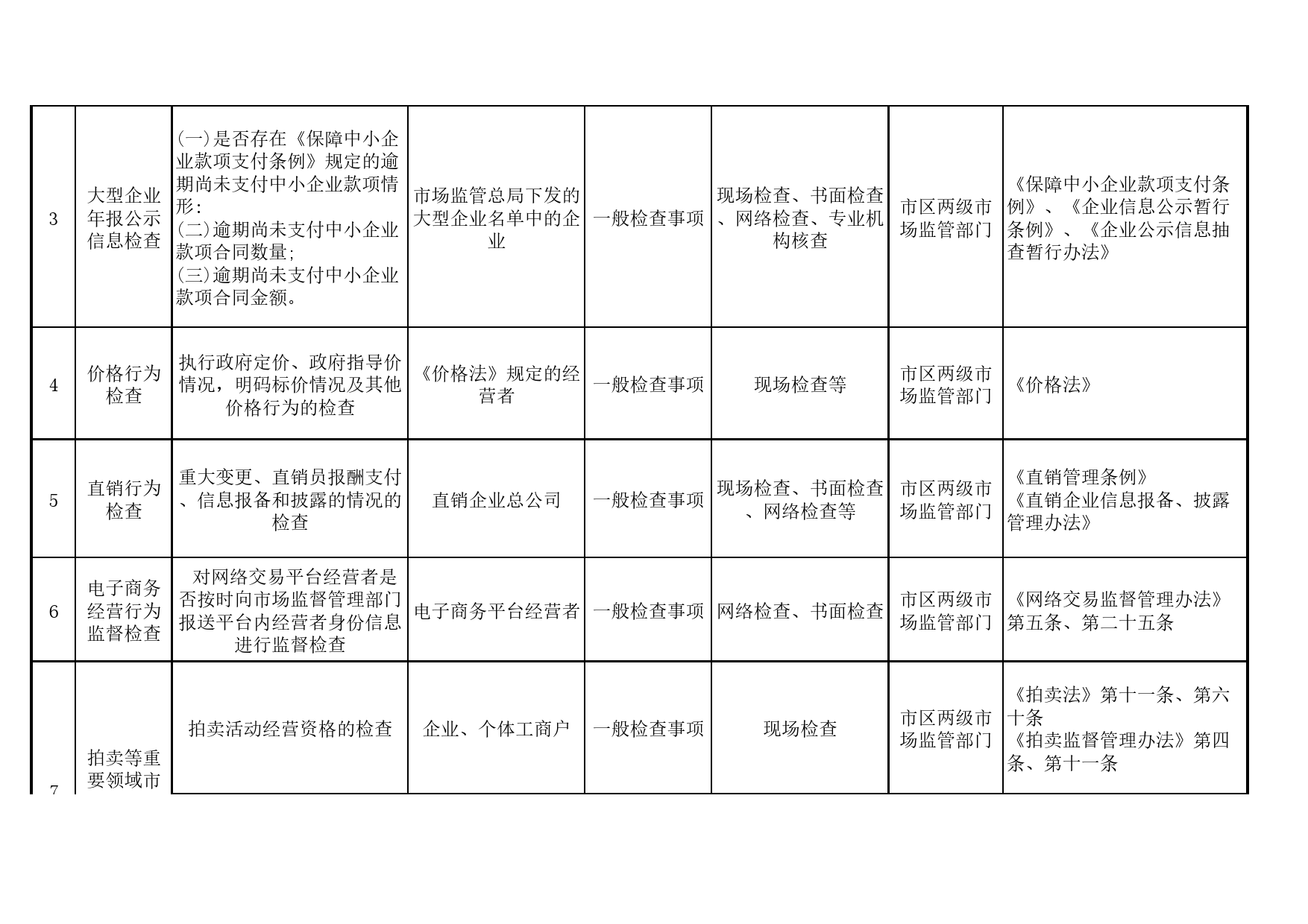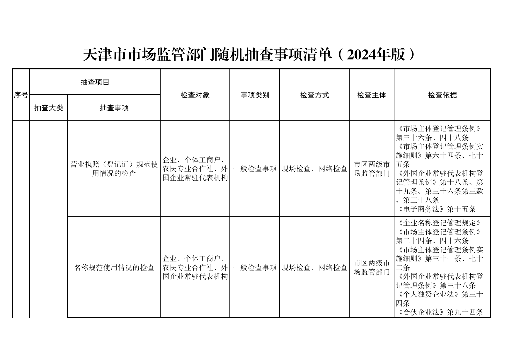 天津市市场监管部门随机抽查事项清单(2024年版)