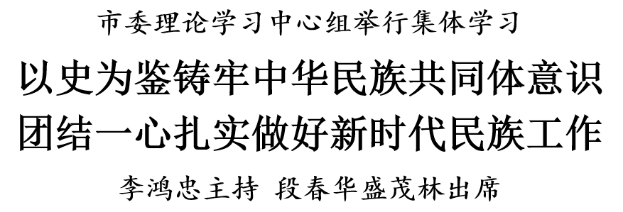5日下午,市委理论学习中心组举行集体学习,深入学习贯彻习近平总书记关于加强和改进民族工作的重要思想,以铸牢中华民族共同体意识为主线,扎实推动我市新时代民族工作高质量发展。市委书记李鸿忠主持并讲话,市人大常委会主任段春华、市政协主席盛茂林出席。 南开大学周恩来政府管理学院教授、民族事务研究中心主任高永久以“从各民族交往交流交融的历史事实看铸牢中华民族共同体意识”为题作专题讲座。 李鸿忠在讲话中说,铸牢中华民族共同体意识,是新时代党的民族工作的“纲”。要深入学习领会习近平总书记关于加强和改进民族工作的重要思想,深刻认识推进中华民族共同体建设的政治意义、历史意义和现实意义,牢固树立休戚与共、荣辱与共、生死与共、命运与共的共同体理念,以铸牢中华民族共同体意识的实际成效体现捍卫“两个确立”、做到“两个维护”。 李鸿忠强调,我国是统一的多民族国家,一部中国史就是各民族交融汇聚成多元一体中华民族的历史,就是各民族共同缔造、发展、巩固统一的伟大祖国的历史。要坚定历史自信、文化自信,引导各族人民牢固树立正确的国家观、历史观、民族观、文化观、宗教观,坚定对伟大祖国、中华民族、中华文化、中国共产党、中国特色社会主义的高度认同。要高举中华民族大团结旗帜,在加强团结和睦、人心和顺上下功夫,促进各民族交往交流交融,像石榴籽一样紧紧抱在一起。要重在“心”字上下功夫,用心用情,坚持有限无限相结合,在对口支援协作中做好民族工作,继续与少数民族群众结对子、结亲戚,持续帮助各族群众过上好日子,把党的关怀温暖送到群众心坎上。各级领导干部要进一步提高政治判断力、政治领悟力、政治执行力,严格履行政治责任,提高做好民族工作的能力水平,切实把党中央决策部署贯彻落实到位。